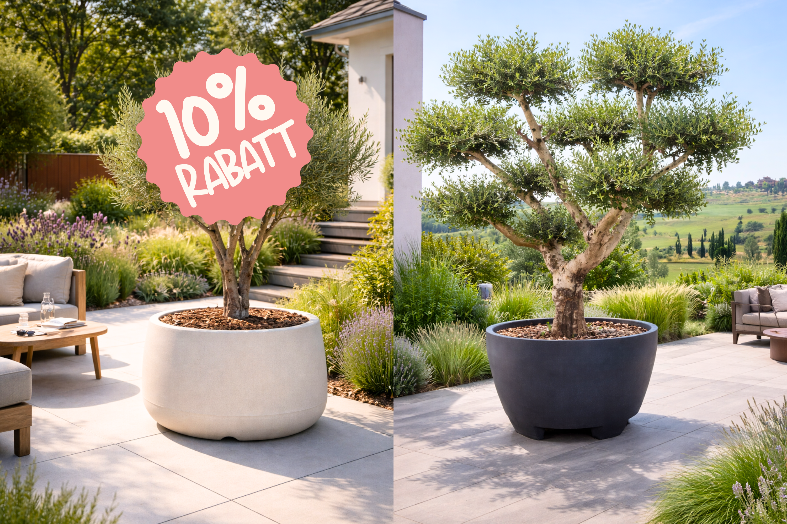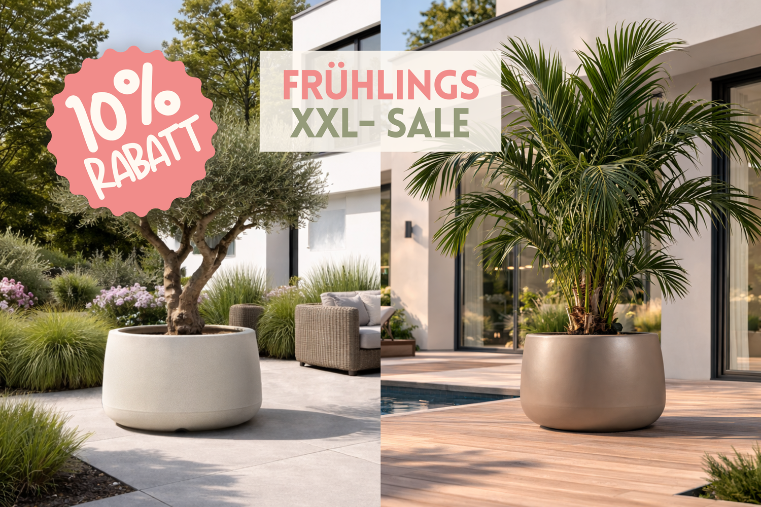 Der Frühling ist da – und damit die perfekte Zeit, Garten und Terrasse neu zu bepflanzen. Zum Start in die Gartensaison erhalten Sie 10 % auf alle XXL-Pflanzkübel ab 80 cm Durchmesser. Geben Sie großen Pflanzen den Raum, den sie verdienen, und machen Sie Ihren Außenbereich bereit für eine wunderschöne Gartensaison.