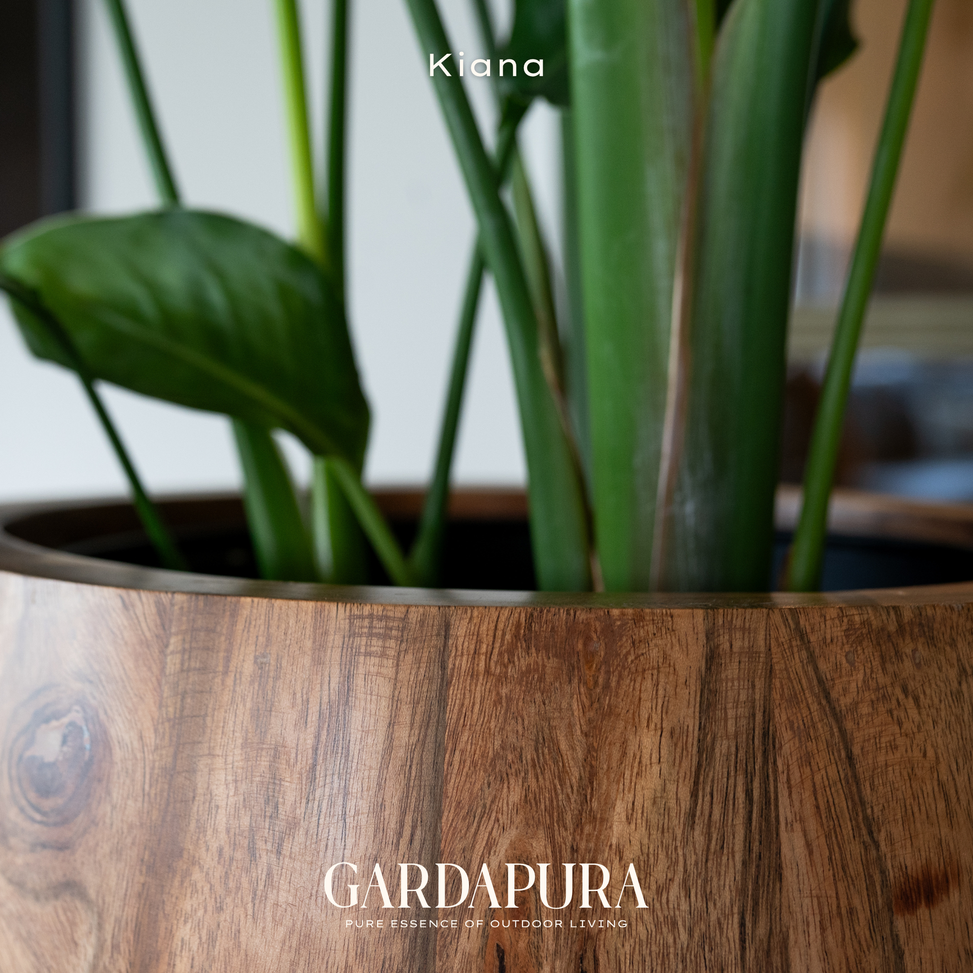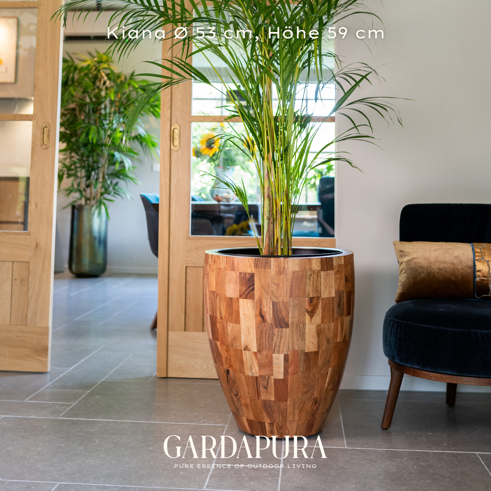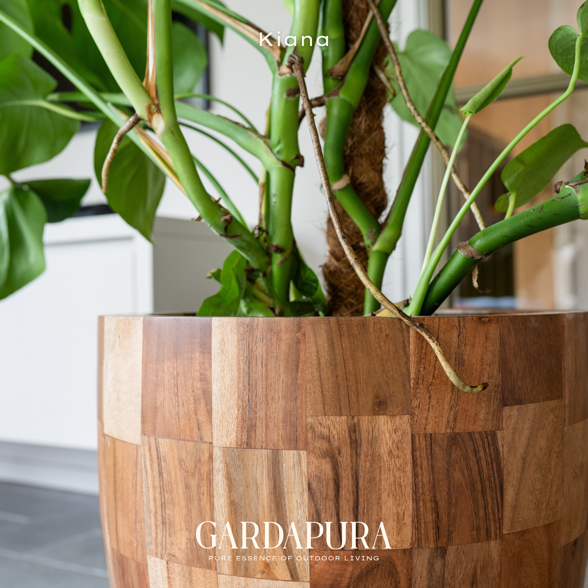 Der Kiana Pflanztopf vereint natürliche Wärme mit durchdachtem Design. Gefertigt aus echtem Holz, bringt er den unverwechselbaren Charakter der Natur direkt in Ihr Zuhause – und schafft ein stilvolles Statement für moderne wie klassische Interieurs.
