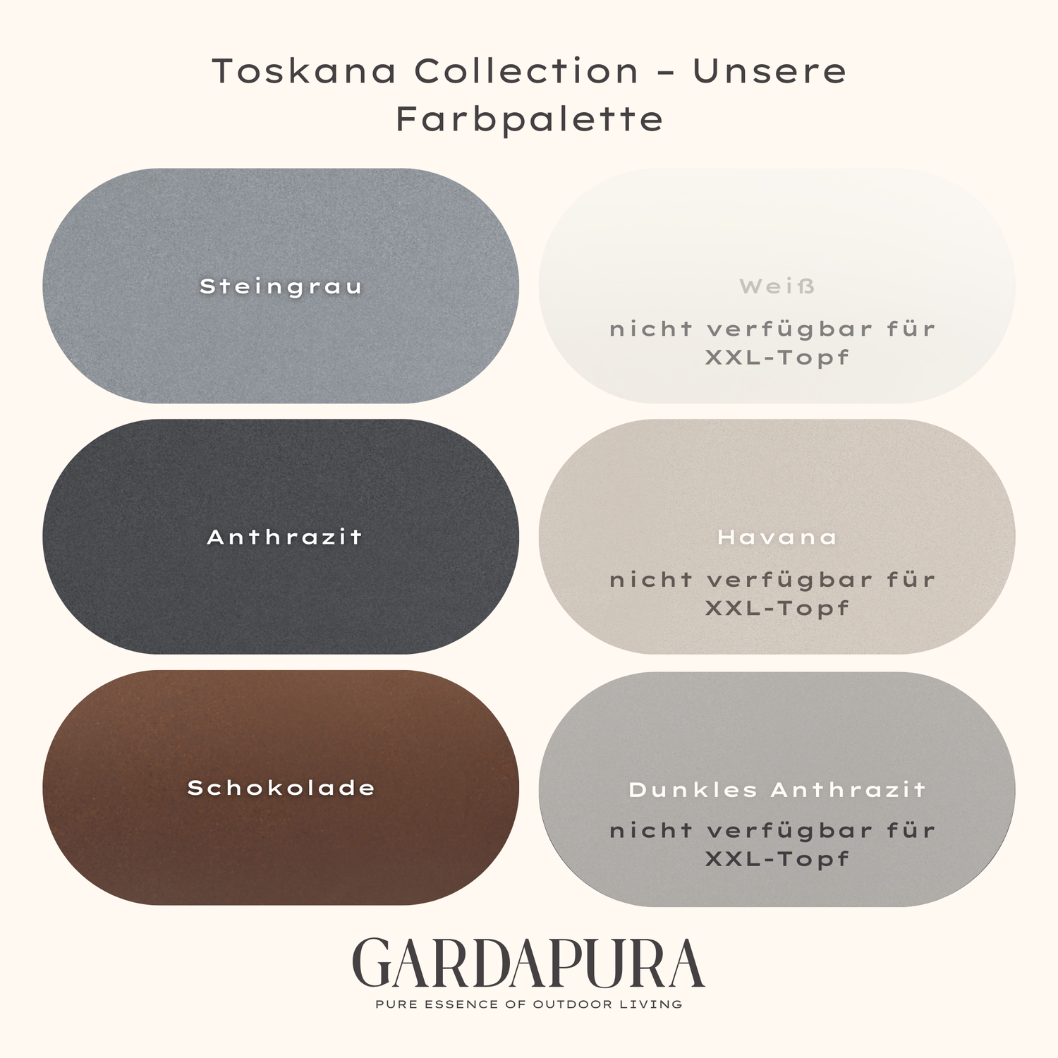 Der Mobile Pflanztopf XXL ist in Anthrazit, Steingrau und Schokolade erhältlich und passt farblich so zu den anderen Modellen der Toskana Collection.