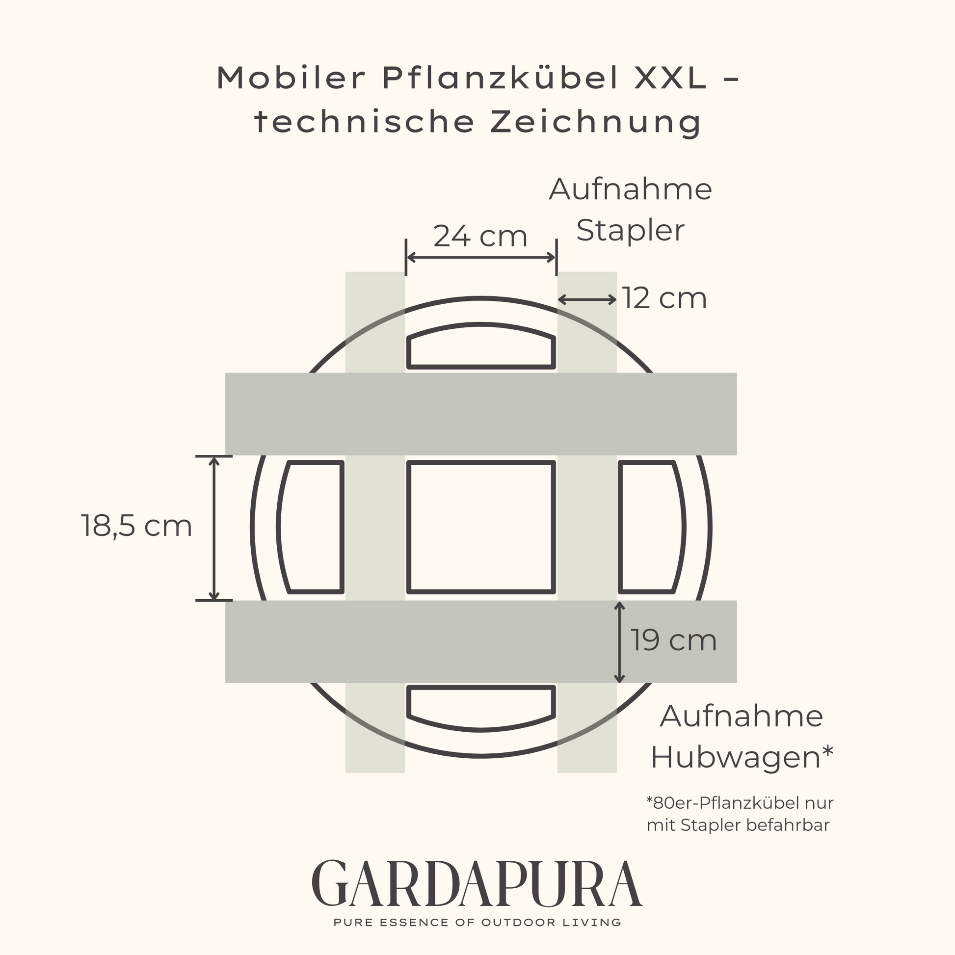 Bitte lesen Sie auch unsere Informationsseite "Häufig gestellte Fragen zu den mobilen XXL-Pflanztöpfen – FAQ", um offene Fragen zu klären.