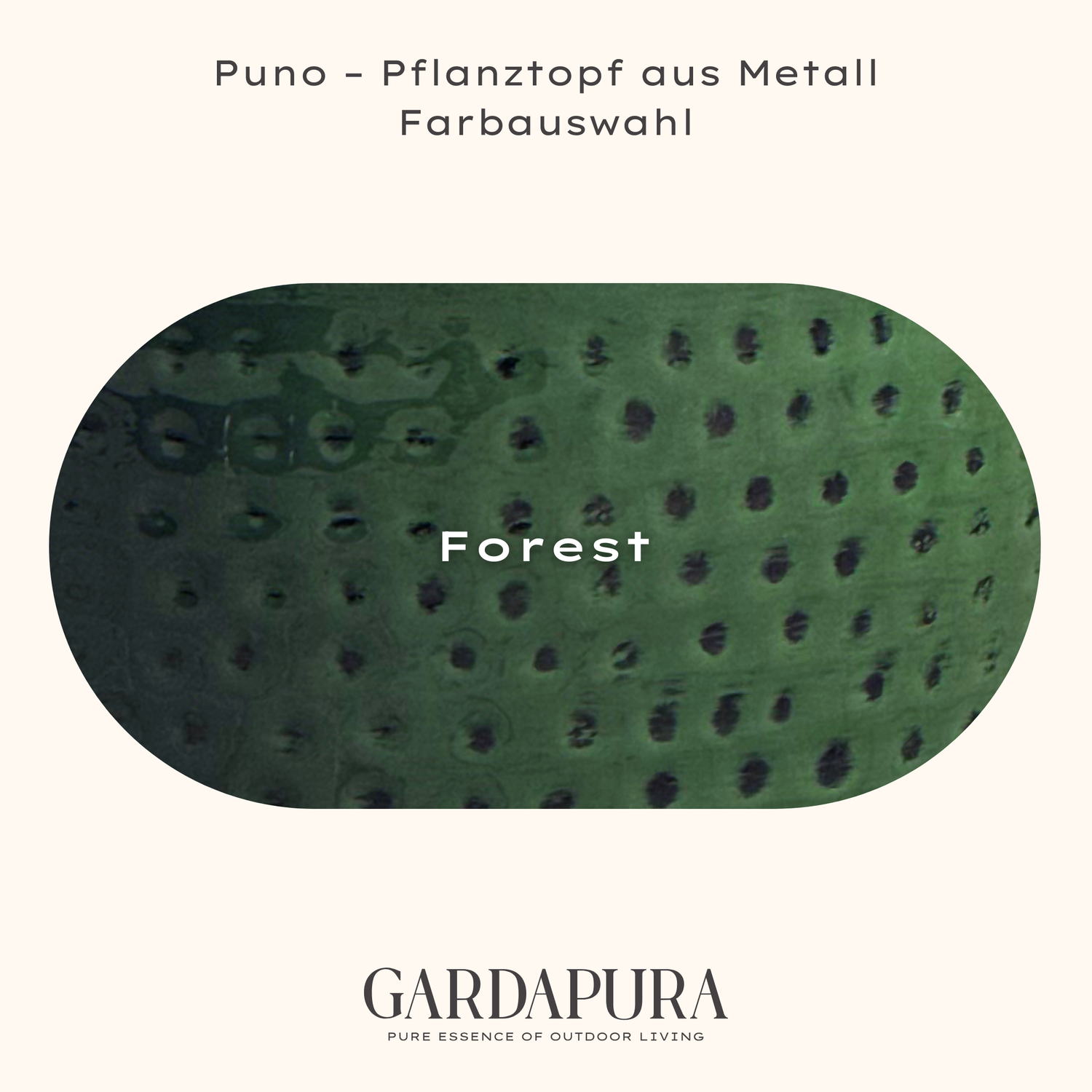 Seine waldgrüne Farbe bringt eine ruhige, erdverbundene Atmosphäre in jeden Raum oder Garten. Ob als stilvolle Ergänzung für moderne Außenbereiche oder als Kontrast zu minimalistischen Interiors – Puno fügt sich nahtlos in verschiedene Umgebungen ein und setzt Pflanzen eindrucksvoll in Szene.