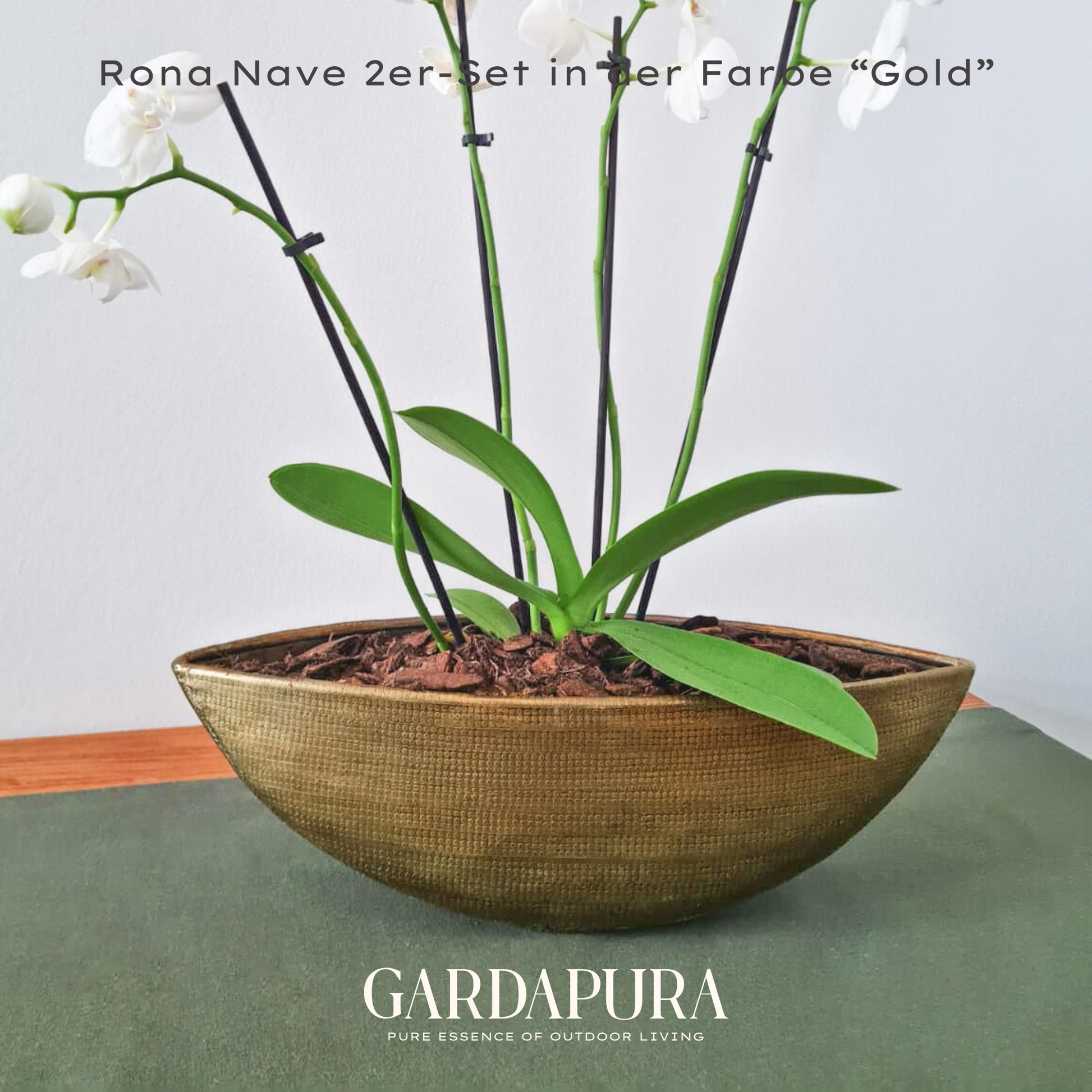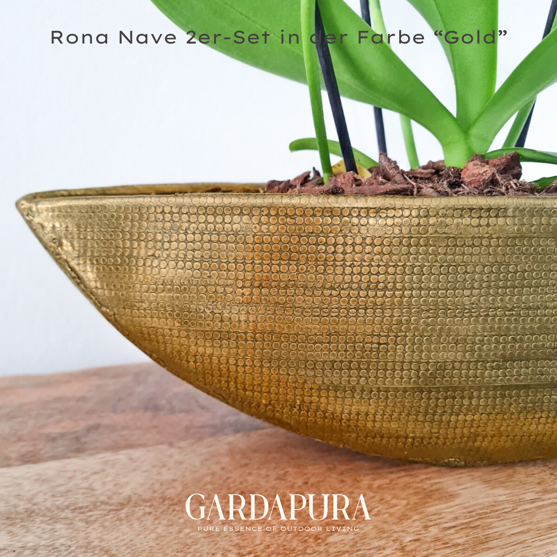 Das Rona Nave 2er-Set ist eine ganz besondere Ergänzung zu unseren bestehenden Rona Modellen. Die Pflanzschalen wirken durch ihre schiffchenartige Form dynamisch und einzigartig – ein echtes Design-Statement. Anders als klassische runde Gefäße zeigen die Nave-Schalen eine spannende Silhouette. Perfekt für längliche Pflanzungen, kreative Arrangements oder als dekoratives Einzelstück auf Tischen und Sideboards. Erhältlich in Gold, Silber und Grüngold, setzen sie glänzende Akzente in jedem Raum.