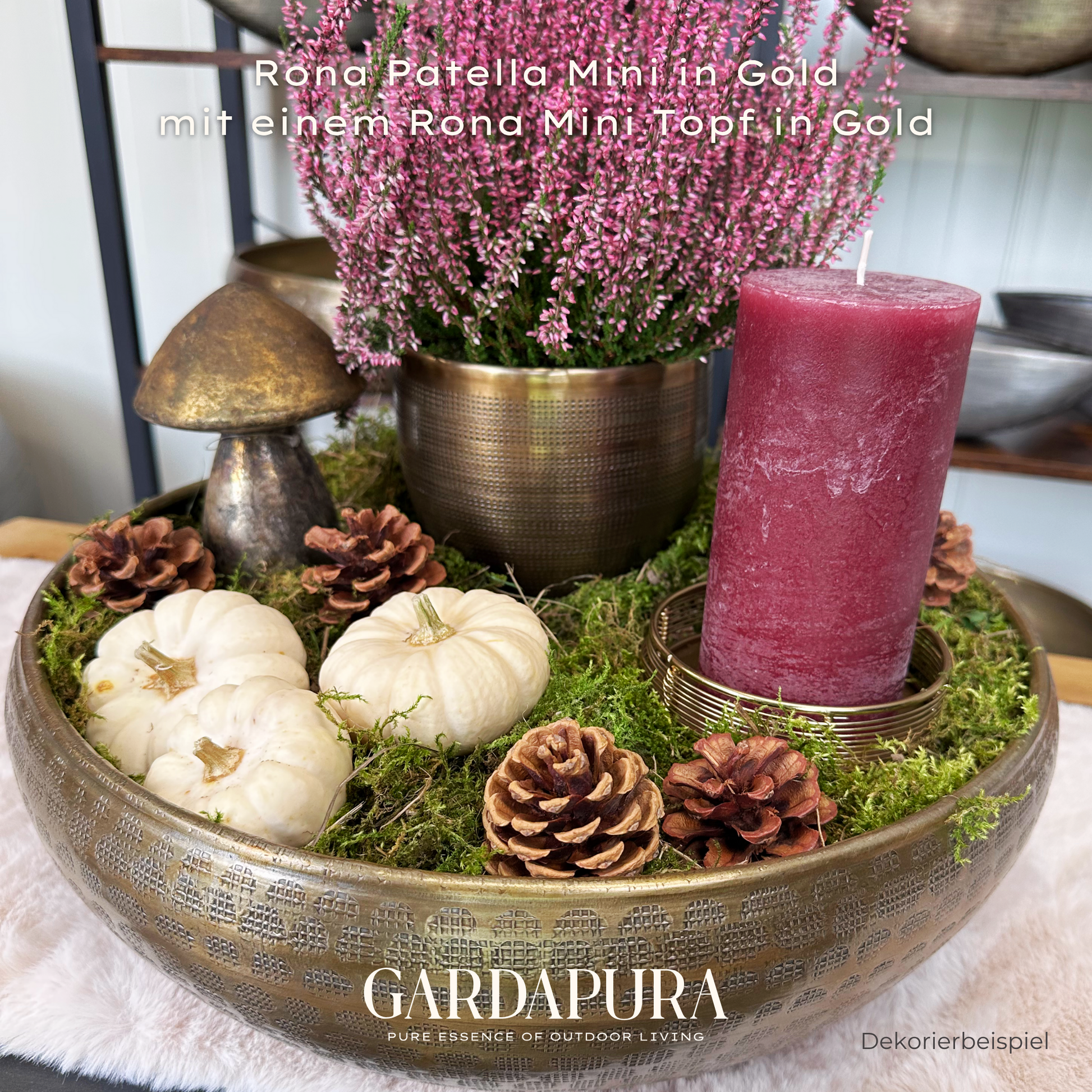 Das Besondere an der Mini-Version ist nicht nur ihre kompaktere Größe, sondern auch die leicht unregelmäßige Oberflächenstruktur, die ihr eine charmant handwerkliche und besonders edle Ausstrahlung verleiht. Mit ihrer flachen Form eignet sie sich hervorragend für arrangierte Pflanzungen, wie etwa Sukkulenten, Orchideen, kleine Blühpflanzen oder dekorative Trockenarrangements.